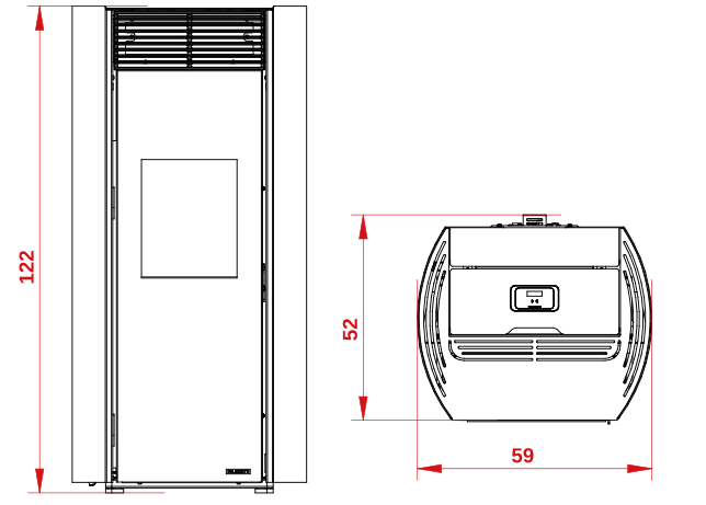 Consumo horario pellets 0.64 – 2.99 kg/h
